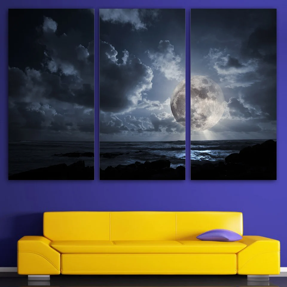 Baru Kedatangan Bergegas 3 Panel Kanvas Art Langit Mendung Gelap