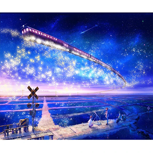 3d Kartun Langit Berbintang Yang Indah Kereta Gambar Berlian Bordir