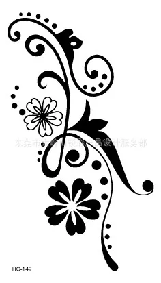 Wyuen Bunga Asli Stiker Tato Tangan Dicat Gaya Bunga Sederhana Hitam