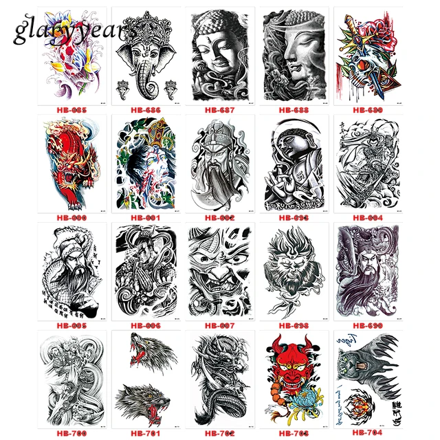 20 Desain 1 Piece Bunga Pola Lengan Stiker Tato Harimau Naga Totem