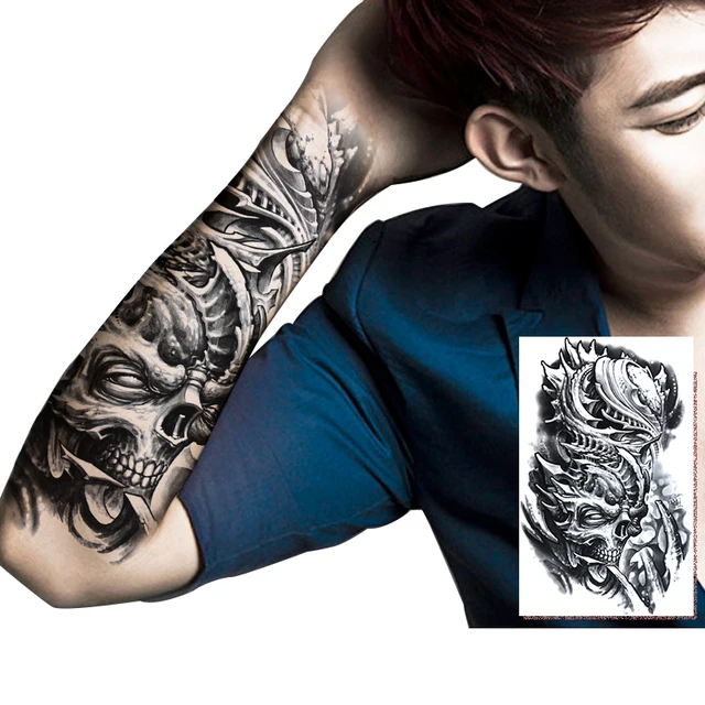 Punk Keren Tengkorak Pola Tatto Temporer Tahan Air Pria Tato
