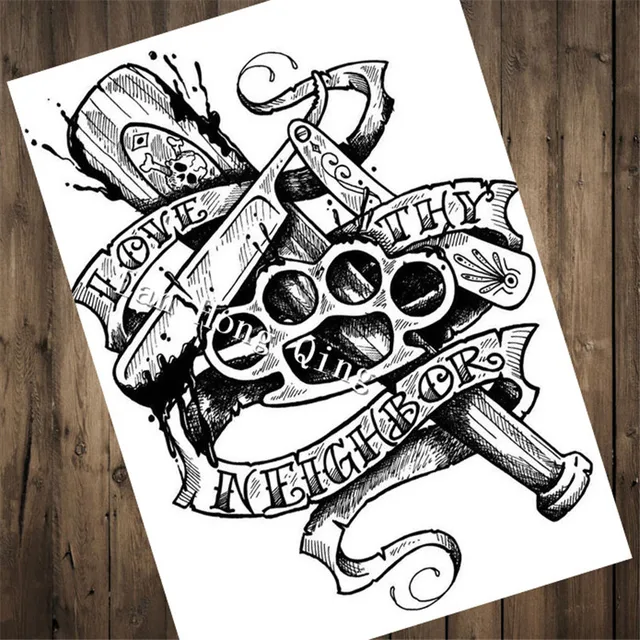 Waktu Terbatas Antik Tato Bermotif Poster Cinta Tetangga Rumah