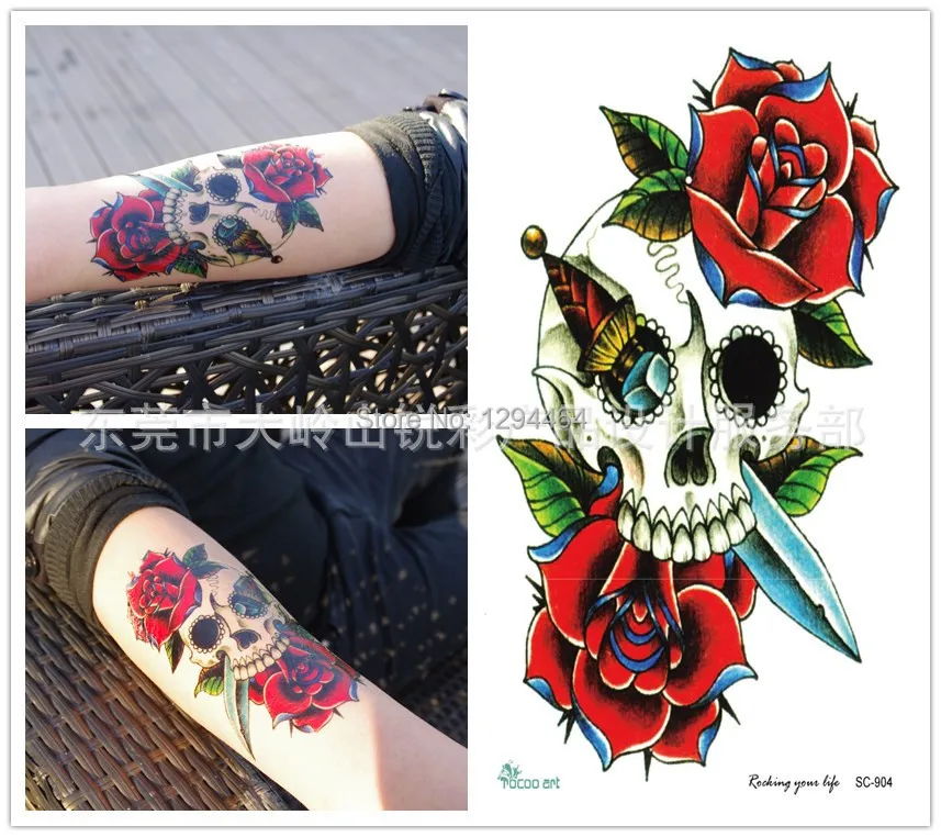 Jual Tato Tengkorak Tiga Mawar Temporary Tattoo Tato Temporer Besar