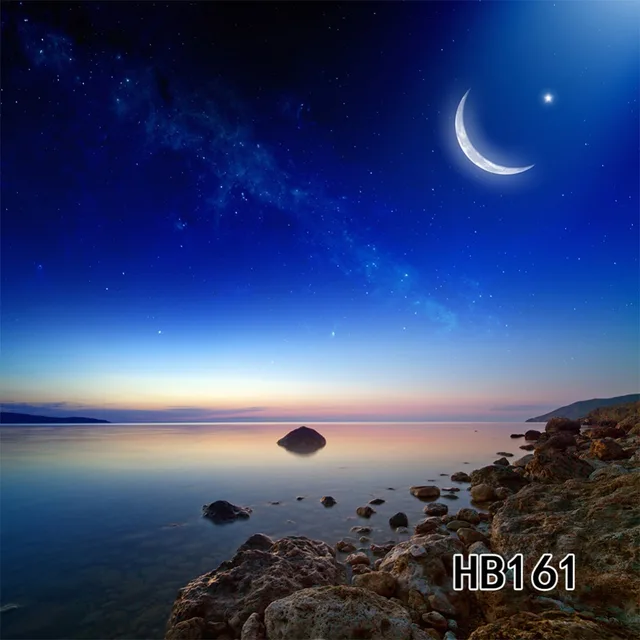 Lb Laut Horizon Cerah Bulan Dan Bintang Di Langit Laut Rocky Vinil