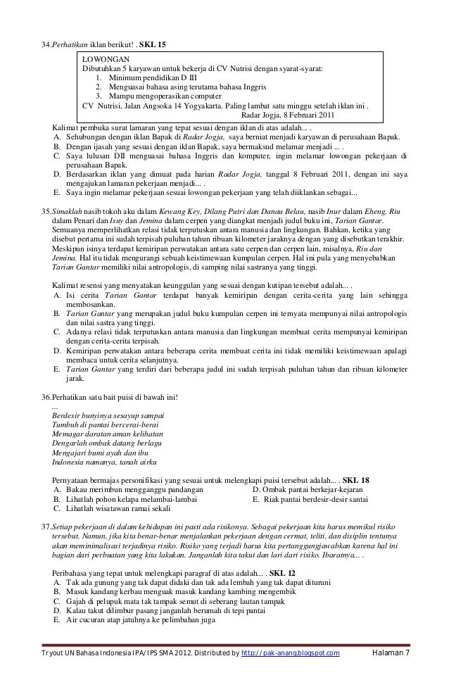 Soal Prediksi Dan Tryout Un Bahasa Indonesia Sma Program Ipa Ips