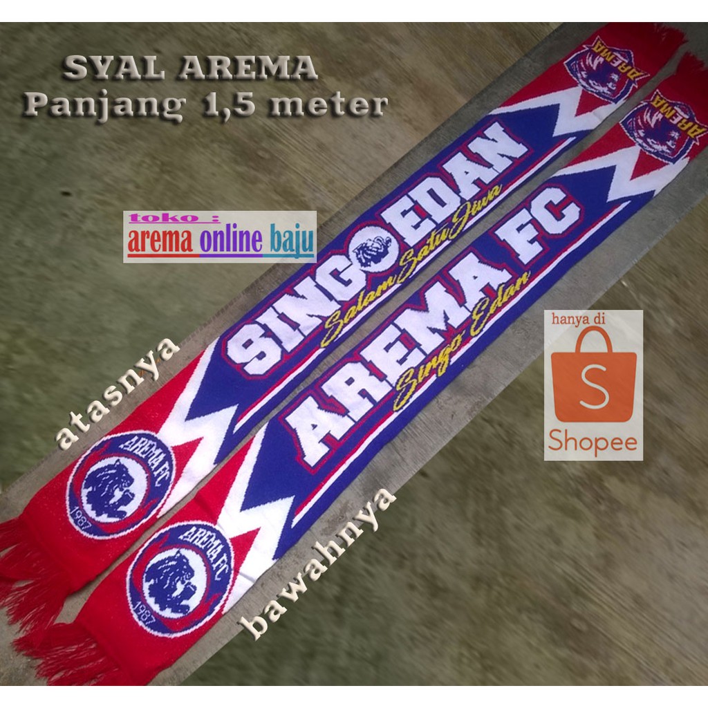 Desain Dan Rajut Komputer Syal Arema Tulisan Singo Edan Baliknya