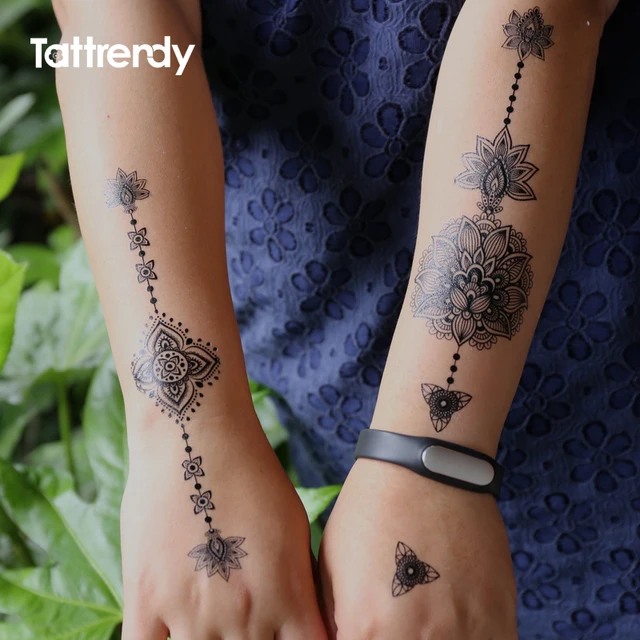 Wanita Hitam Henna Sementara Tato Stiker Renda Besar India Bunga