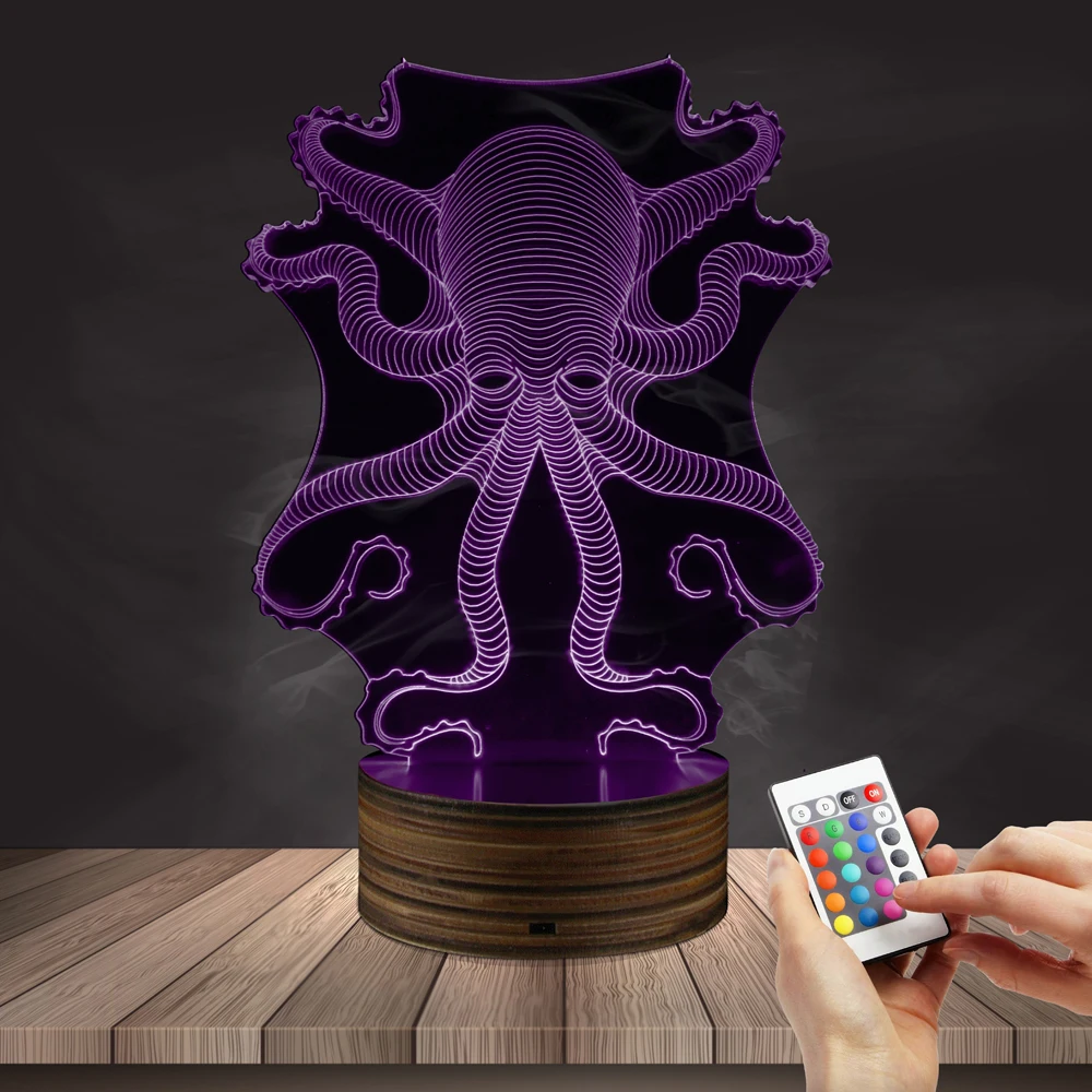 1 Buah Ilusi Optik Gurita 3d Efek Lampu Acrylic Colorful Perubahan