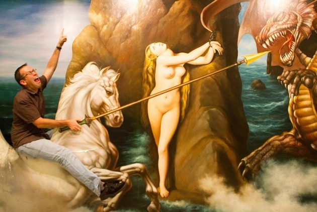 Foto Menyelamatkan Wanita Dari Monster Naga Di Museum Ilusi Optik