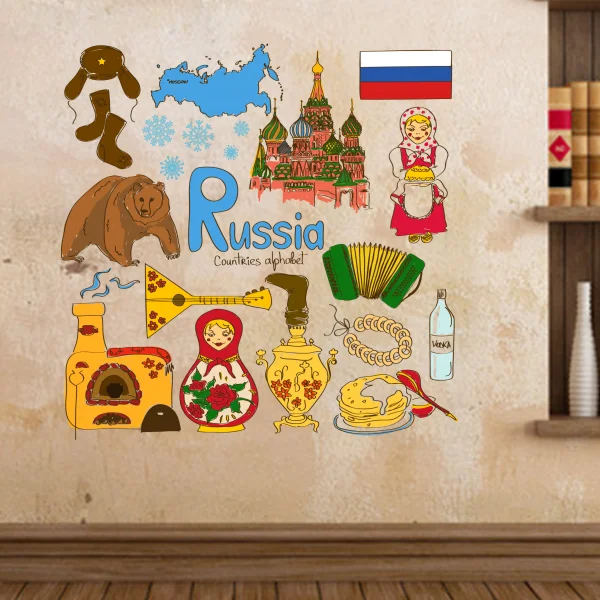 Rusia Berwarna Warni Ilustrasi Travel Landmark Dinding Kata Stiker