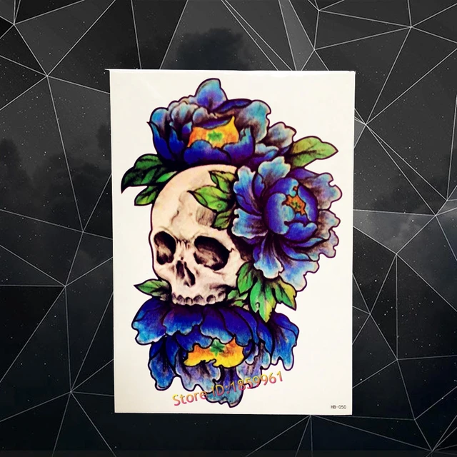 Jual Produk Sejenis Tato Tengkorak Bunga Jam Skull Color Temporary