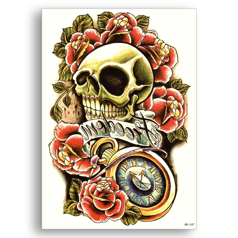 Hot Tato Tengkorak Bunga Jam Skull Color Temporary Tattoo Tato