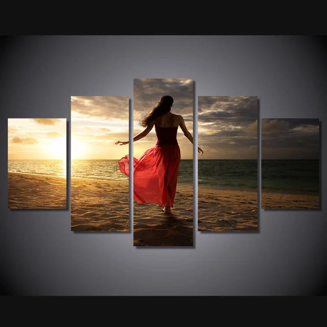 5 Pcs Sets Dari Sunset Pantai Laut Kecantikan Lukisan Minyak Wanita