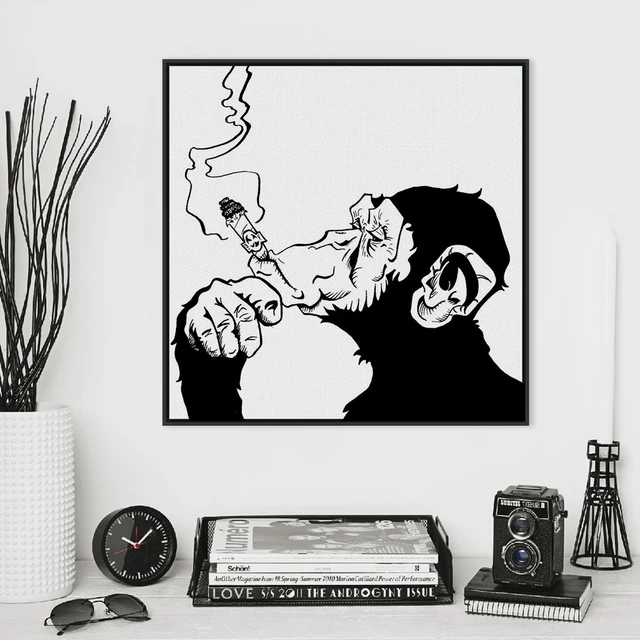 Mode Hitam Putih Merokok Gorila Hewan A4 Art Cetakan Poster Pribadi