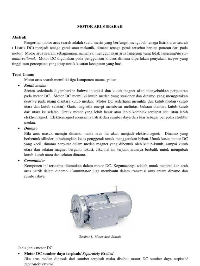 B Motor Listrik Arus Searah Dc Motor Listrik Arus Searah Merupakan