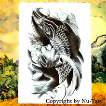 Terbaik Tato Ikan Koi Fish Hitam Temporary Tattoo Tato Temporer Besar