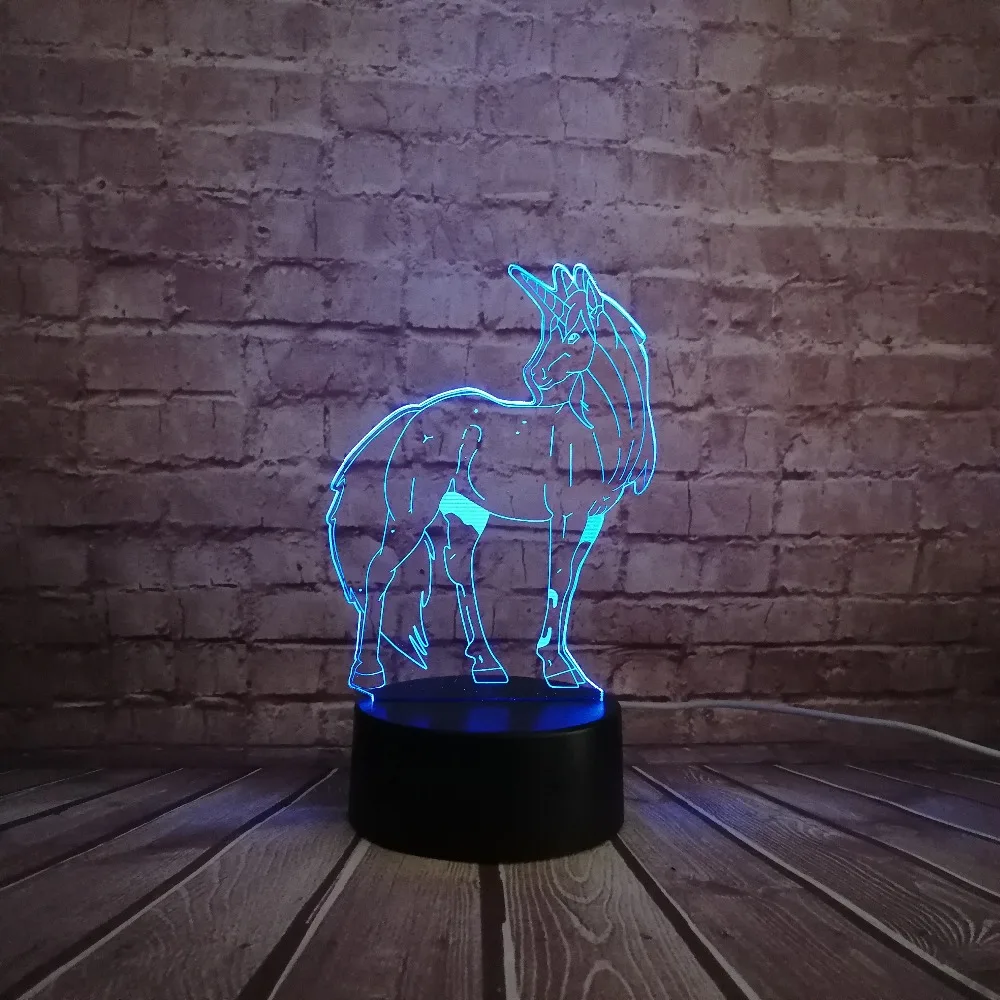 2018 Baru Hewan Kuda Unicorn 3d Ilusi Led Malam Lampu Led Meja