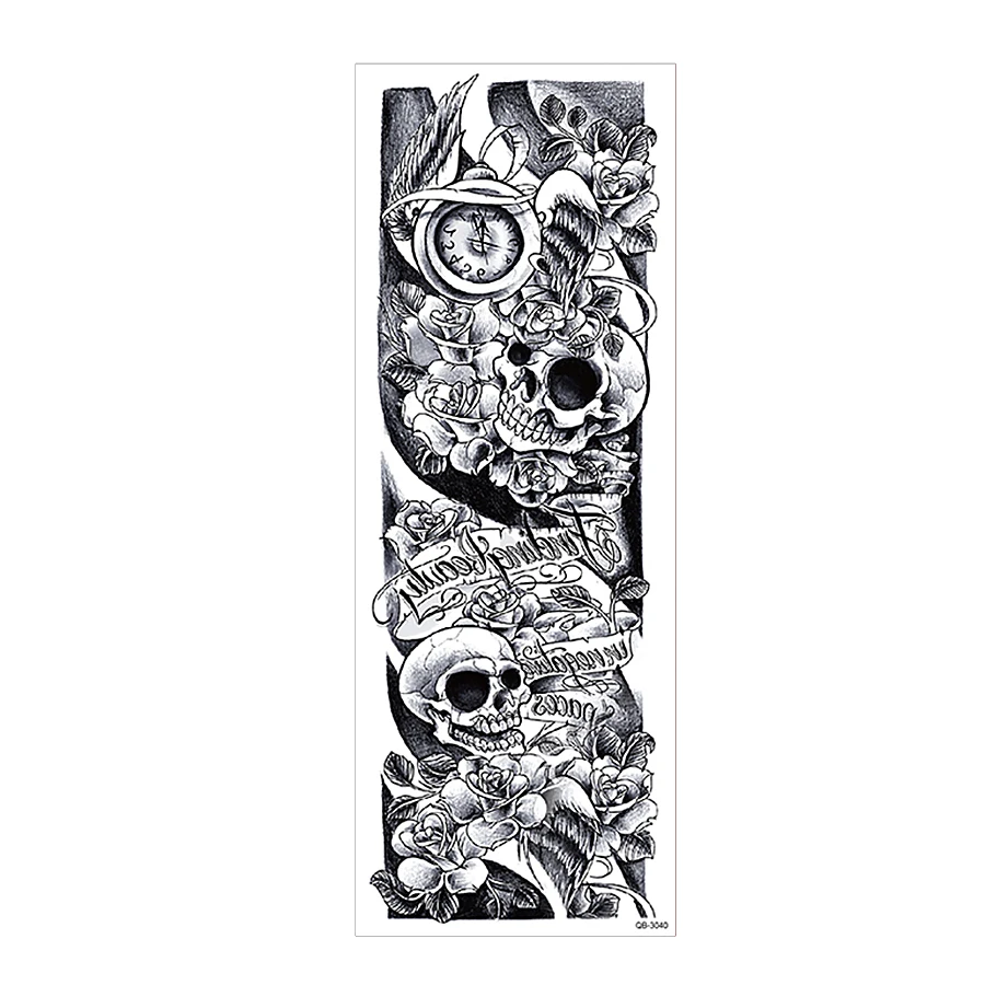 Ukuran Besar Dilepas Stiker Tengkorak Mawar Body Art Tattoo Lengan