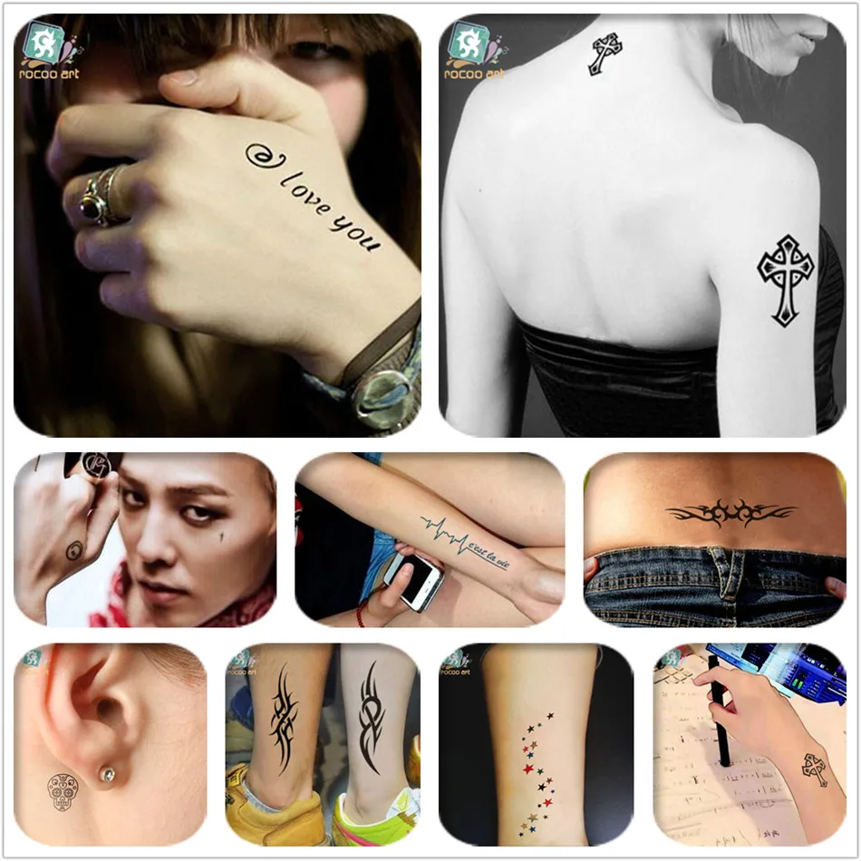 Campuran 8 Lembar Desain Tattoo Tribal Salib Hitam Tato Tubuh Palsu