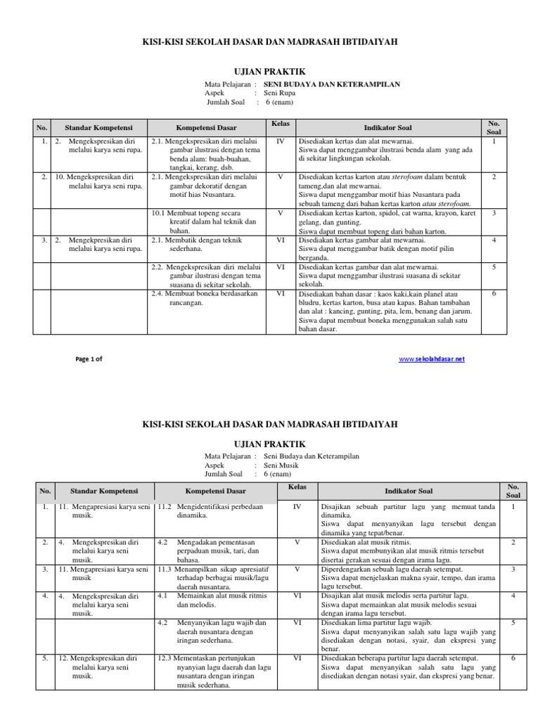 Kisi Kisi Sekolah Dasar Dan Madrasah Ibtidaiyah Ujian Praktik