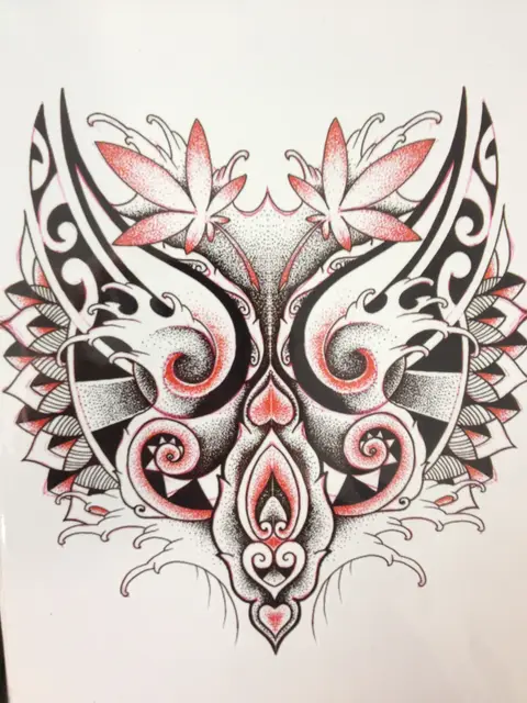 2016 Mode Sederhana Tato Merah Dan Hitam Seksi Keren Kecantikan