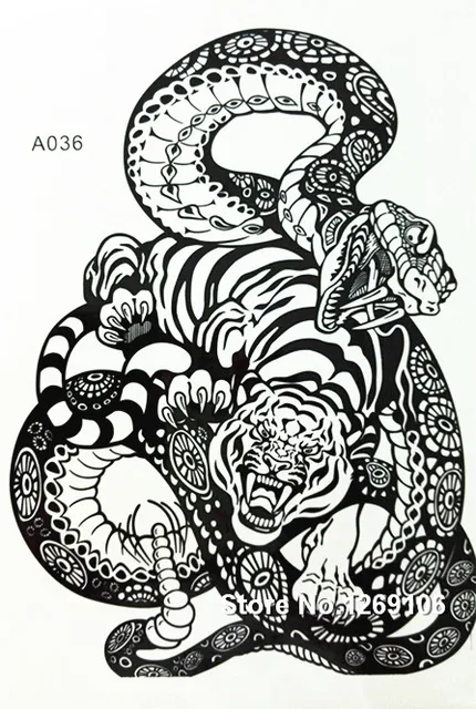 2018 Baru Sederhana Tato Keren Ular Pertarungan Harimau 21x15 Cm