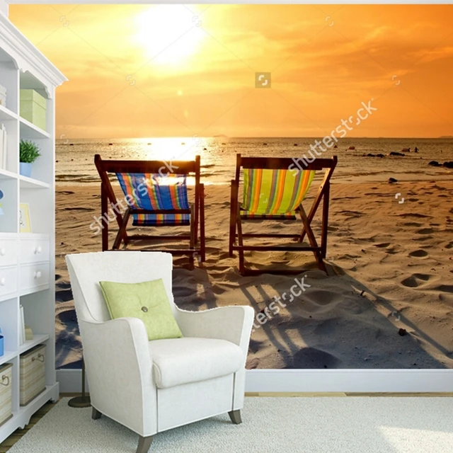 Kustom 3d Foto Wallpaper Sunset Pantai Pohon Kelapa Pemandangan