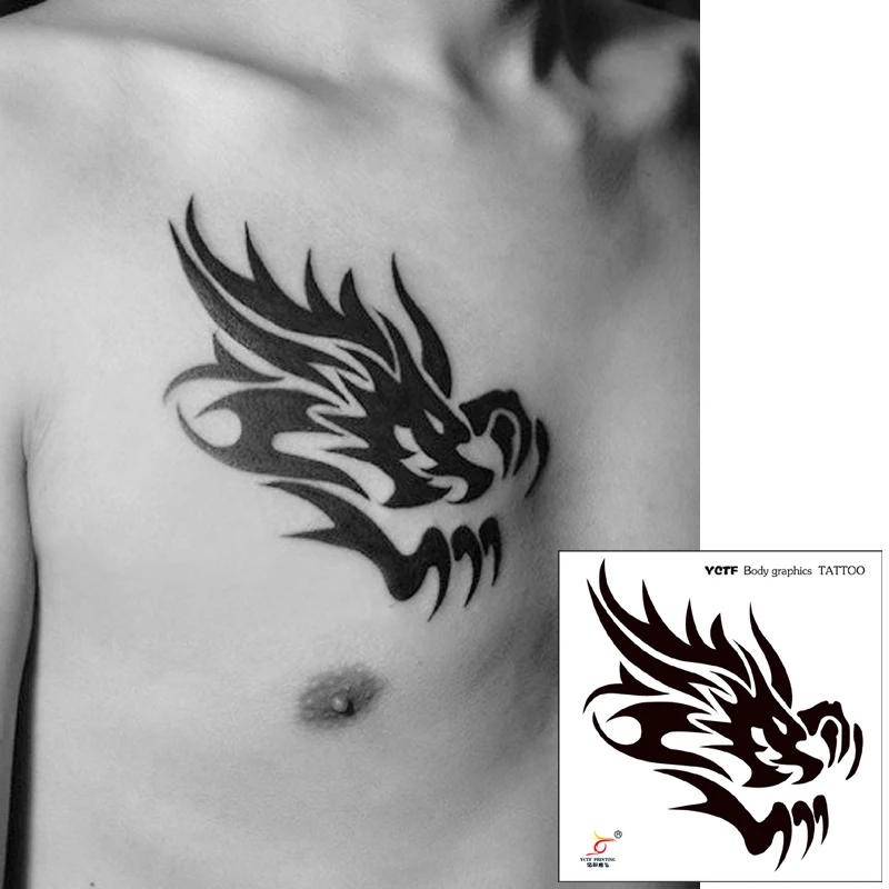 Dada Sementara Tato Stiker Tahan Air Hitam Naga Kualitas Tinggi