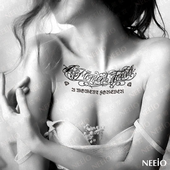 Women Temporary Tattoo Letters Waterproof Sexy English Forever Chest