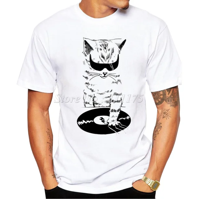 2019 Pria Lucu Dj Musik Kucing Design T Shirt Pria Fashion Keren