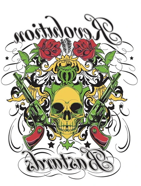 2pcs Temporary Colorful Tattoo Rose Skull Gun Tattoo Sticker Women