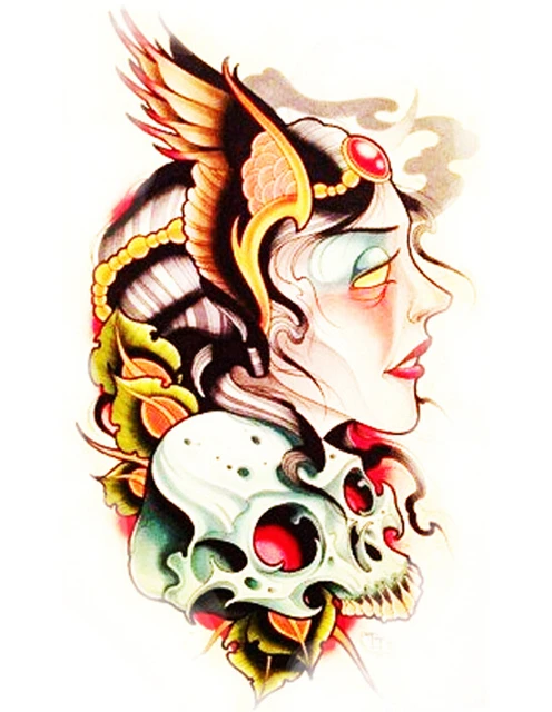 1sheet Temporary Tattoo Colorful Beauty Skull Tattoo Sticker Art For