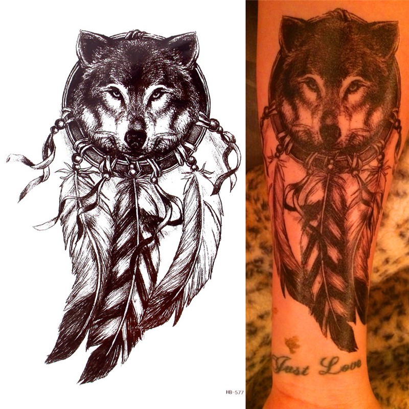 Keren Stiker Tato Sementara Tato Tahan Air Gambar Serigala Dengan