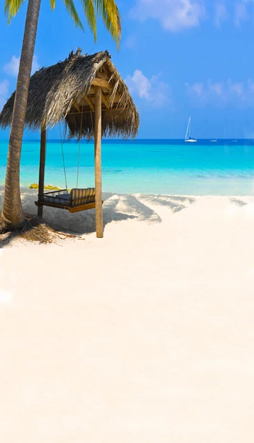 Kelapa Pohon Tema Studio Backdrop Laut Pantai Biru Langit Kembali